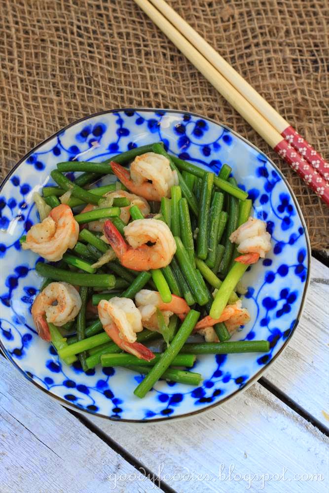 Recipe: Stir fried flowering chives with prawns (Chinese)