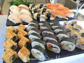 Then tuck in to one of many festive looking salads, or appetizers or make your way to the sushi counter for some sushi and sashimi (usually salmon, butterfish and tuna).