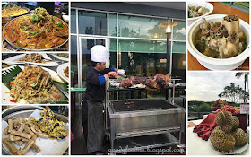 For desserts, there is a variety of local kuih and cakes, fresh fruits, ais kacang, cendol pulut, and aiskrim Malaysia. Durian will also be served from 8pm onwards.